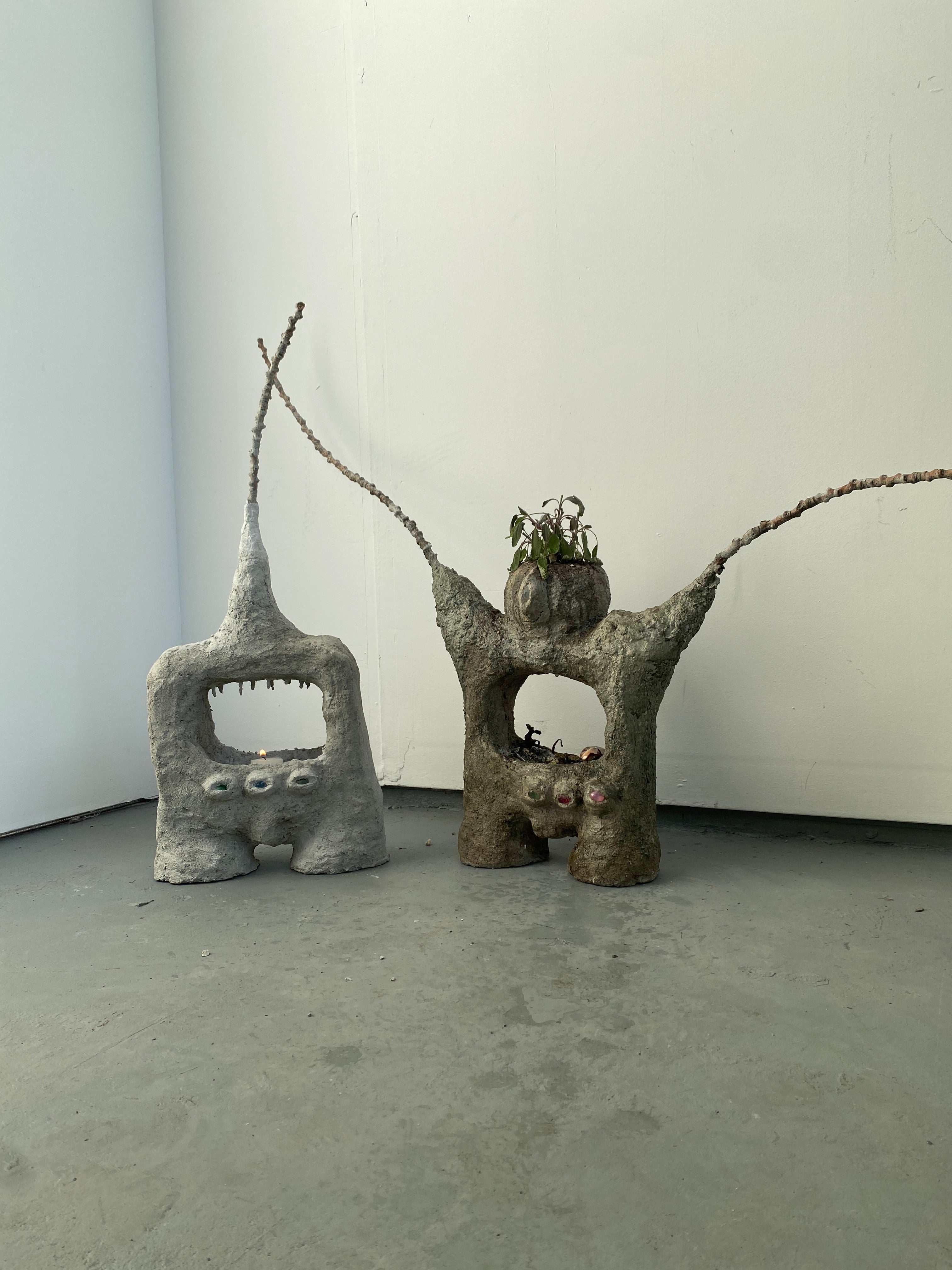Grace Jung is a multidisciplinary artist and educator working at the intersection of sculpture, ecology, and biology. Her practice alchemizes new worlds from the decomposed—translating cycles of decay into gestures of renewal. Through meditation on the origins of form, Jung calls upon an ancestral memory, tracing the invisible threads that bind all living things. Her sculptures act as conduits for transformation—sites where the microbial and the monumental coexist, where growth emerges from ash. Working with algae, fungi, and calcium carbonate, Jung cultivates a rich material language of biomaterials that engage processes of digestion and regeneration. In nurturing these living systems, she invites us to reconsider what it means to be alive, to share space, and to become together.