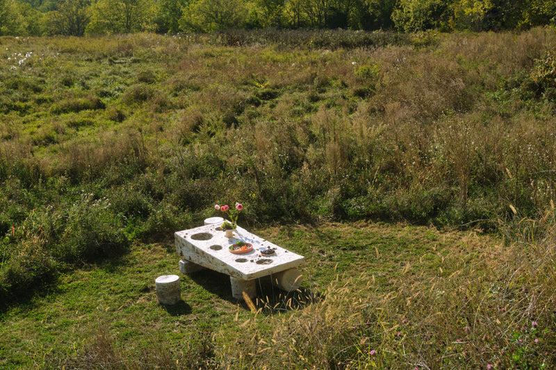 Working across the scales of architecture, installations and objects, my creative process is instigated by the power of the surrounding material and natural world to articulate rituals, movement, behavior, gestures and relationships. To harness this symbiosis, I engages natural processes like movement of air, growth, sedimentation, evaporation, vitrification, or the decay and transformations of materials. In the more recent years, my focus has been on research and design with biomaterials, more specifically mycelium, the intricate network of thread-like structures found in fungi. By harnessing the regenerative potential of mycelium, I aim to create pieces that undergo transformation, reflecting the dynamic and positive change from decay to growth.