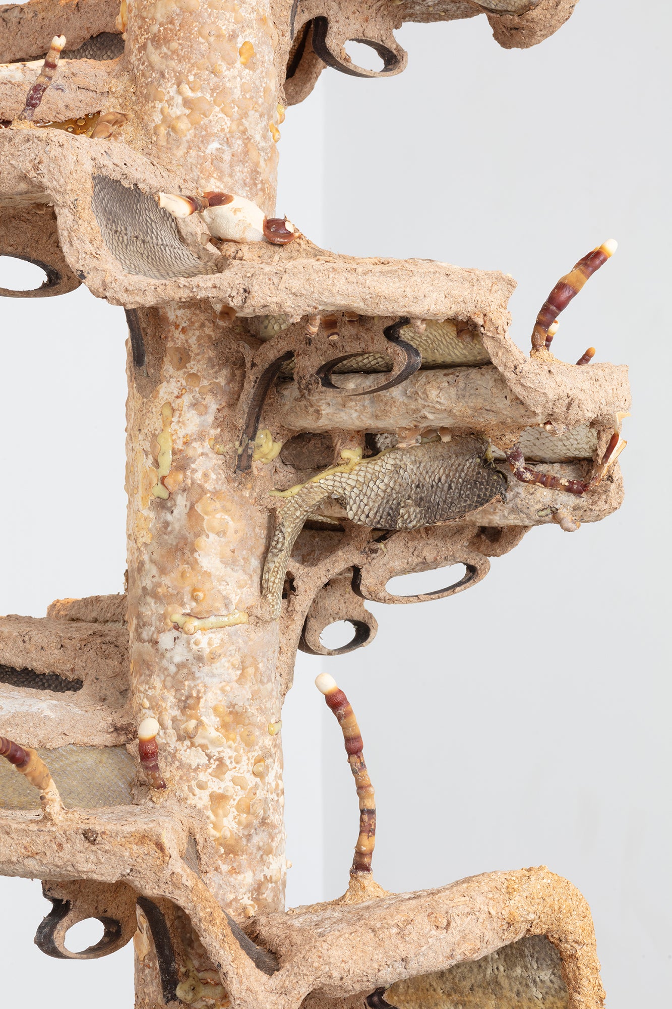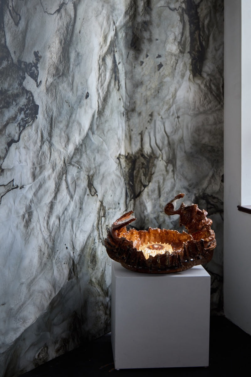 Sasha Fishman is a sculptor and researcher based in New York. Her work explores marine biomaterials, toxicology and energy harvesting as points for critical analysis and mechanisms for sculpting. Fishman holds an MFA from Columbia University, where she collaborated with labs on salmon, fountains, and carbon capture materials. Fishman’s practice, based in sculpture, photo, and video explores intersections of material histories, scientific inquiry, and fringe beliefs. Through developing bio-based materials, tracing histories of plastics, and caring for deep sea eels, her practice of sculpting generates a rheology, the study of the flow of matter, which emerges through her engagement with scientists, environmental conservation industries, water systems, and formulating living, ephemeral, and synthetic materials.